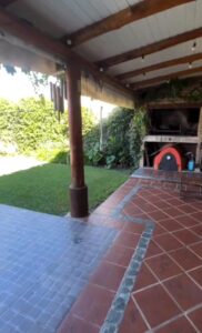 Ingresando por la cochera, el recorrido conduce directamente a una amplia galería con asador y horno de barro, conectada al patio y la pileta, mientras el interior de la vivienda permanece resguardado como área íntima familiar.El sector social funciona prácticamente de manera independiente: una galería cubierta de 3,5 x 11 metros, con baño propio, permite reuniones y encuentros sin alterar la tranquilidad del hogar. Un espacio ideal para quienes disfrutan recibir familia y amigos.